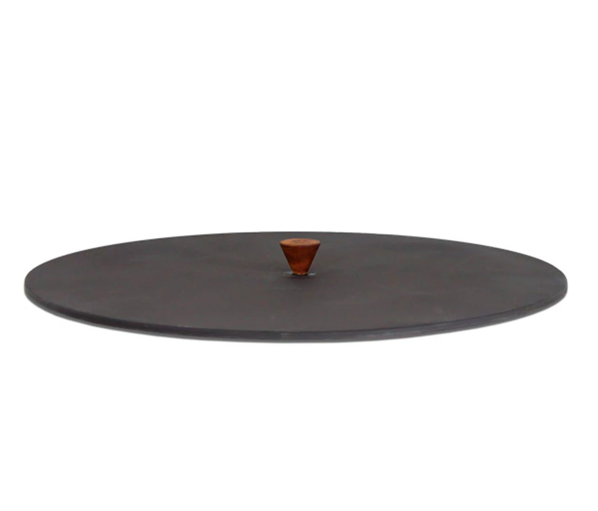 La Tapa Cubre Fuego Negro XL está fabricada en Acero Lacado en negro y equipada con un Pomo Caoba. Con ella, puede apagar el fuego de su Barbacoa Ofyr de forma segura después de usarla. Esta tapadera tiene 6 abultamientos para evitar que se mueva al extinguir el fuego.