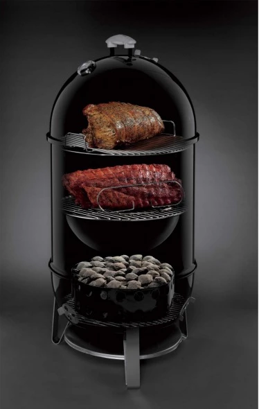 Para hacerle más accesible esta técnica, Weber ha creado la Smokey Mountain Cooker, un ahumador cerrado, en niveles, en el que el humo se difunde de forma homogénea en torno a las parrillas y alimentos que deben cocinarse. Su utilización es tan sencilla como nuestras barbacoas, gracias a una gran apertura que permite realimentar el fuego con briquetas o virutas de madera sin perder humo, tantas veces como la receta lo exija.