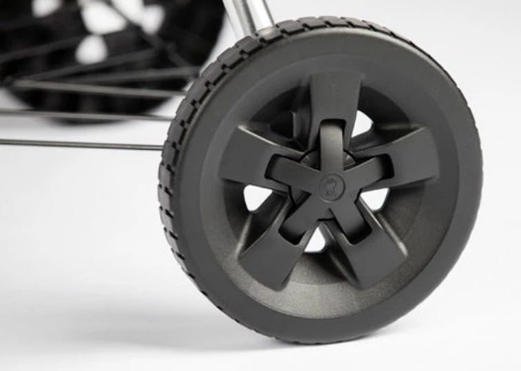 – 2 Ruedas de termoplástico endurecido resistentes a la intemperie.