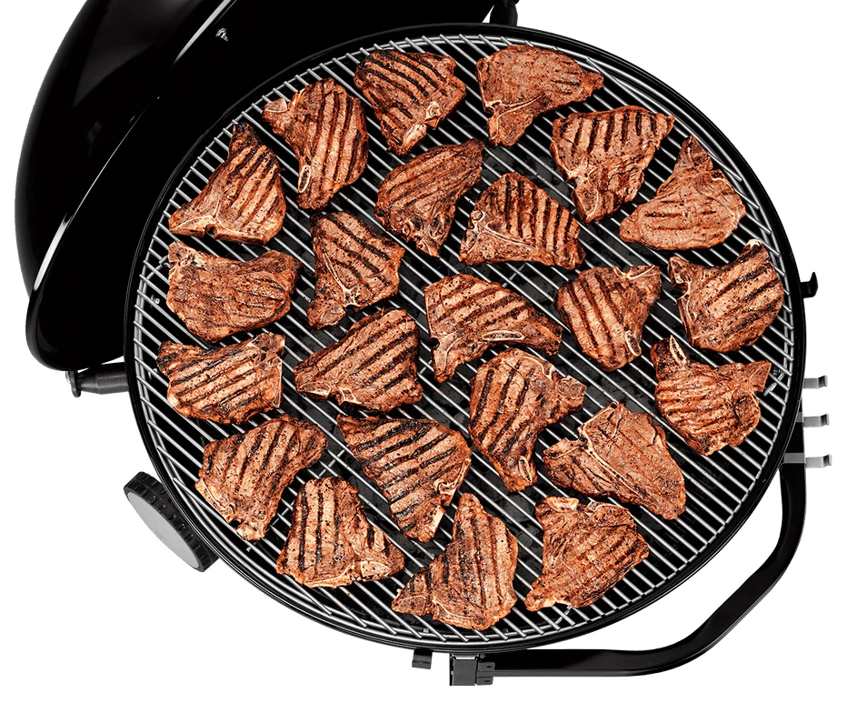 La enorme capacidad de la barbacoa de carbón Ranch Kettle define la atmósfera de cualquier fiesta y la prolonga hasta el día siguiente. Con su parrilla de cocción de ø 94 cm. de diámetro que incorpora bisagras de Acero Inoxidable a los costados para agregar carbón fácilmente, no te faltará de nada cuando quieras cocinar para las masas.